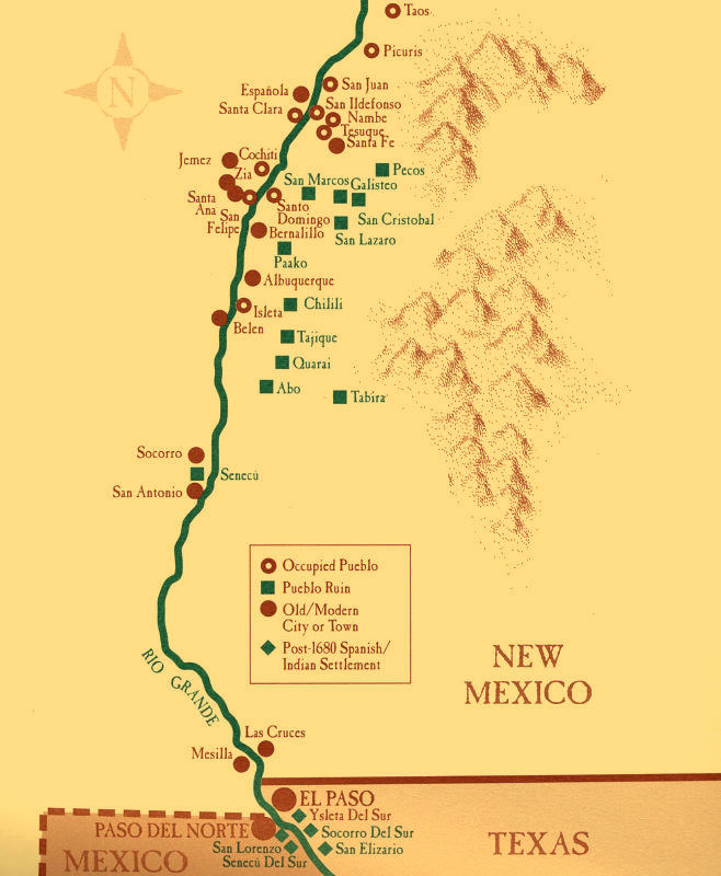 The people had been moved to the river by the Spanish and either housed in new pueblos or ones expanded under Spanish colonial direction. Taos, for example.