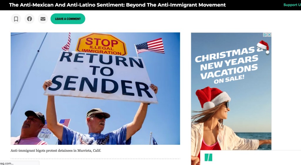 Note the accompanying ad for a white vacation in, what is that, Mexico maybe? Troubling stuff. (Screen capture on December 7, 2023).