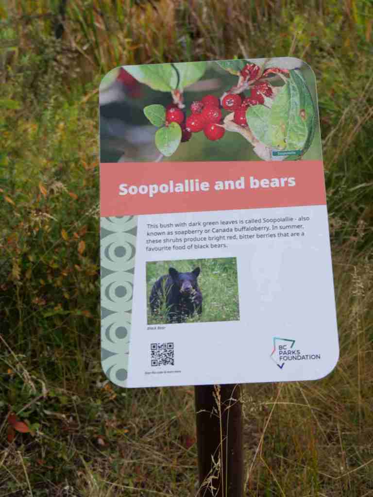 That’s a trail sign from Big Bar Lake Provincial Park, kindly informing travellers that bears eat berries. No matter how many times you read it, though, it doesn’t say that the people on whose land the park sits, the Stswecem’c Xgat’tem, love those berries, too, and have been eating them for a long time. The record they have left on the eskers of the park are at least 6,500 years old. That’s a lot of berries. Now, it’s not that Dr. Breen doesn’t know all this, and I’m sure she bemoans this lack of regard as well, but, even so, the whole notion of rural and urban is getting in the way. Even if rural is defined as areas with populations of less than 80,000 people, with degrees or rurality right down to small communities of 100 people or so, as Dr. Breen elegantly delineated it, the inclusion of Indigenous people in that rurality, while excluding their presence in the berry patch, is problematic. Also problematic is the exclusion of this guy catching some rays on a cold September day.