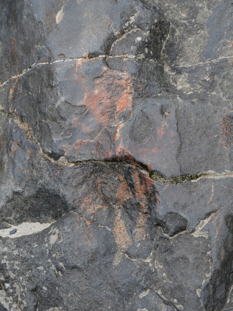 I’m not sure it matters whether rock and river made it or a human hand and eye, or both together. There’s also the goat below, which does clearly appear to have been chipped out of an extruded volcanic layer. If it is a goat. Or maybe a sheep. Or a deer. Is it modern graffiti again? If so, it is a violent and simplistic reading.