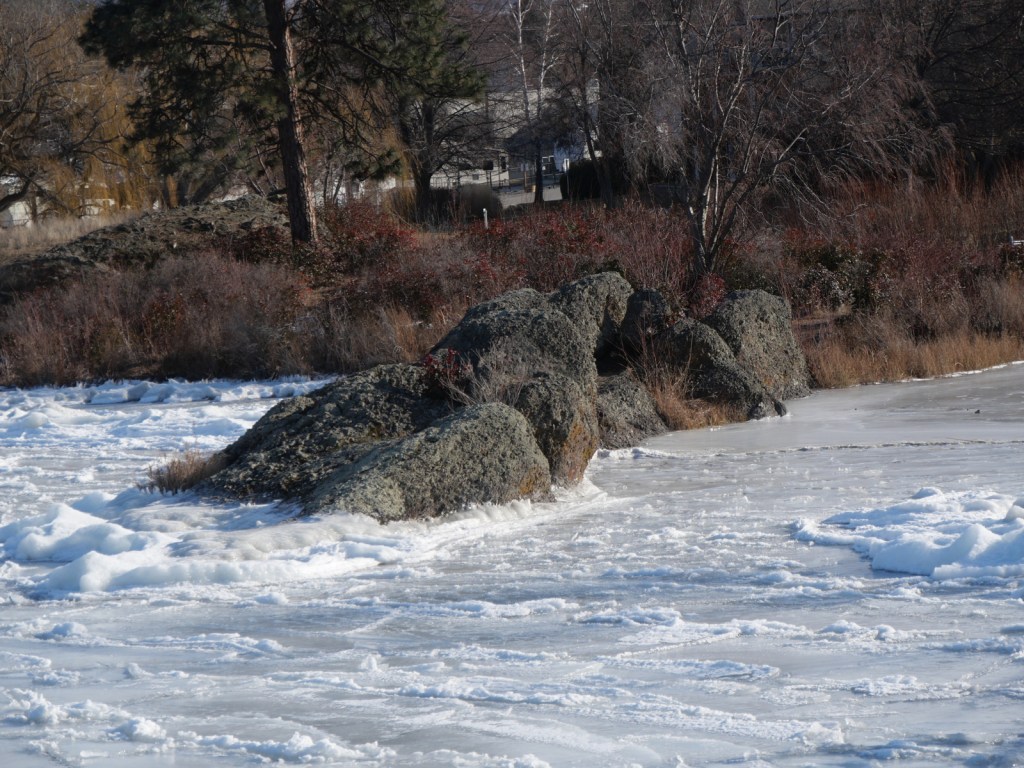 Another point: the land and the water and the people are not separate. This is part of the complex called “The Little Falls”, one of the two salmon fisheries of the syilx nation. Every rock here, every animal form in the rock, has a story. Together, they have another story: the story of cultural erasure through “flood control” (a dam), “irrigation” (for colonial agriculture), and the creation of a British nation within the braid of syilx land and water (British Columbia.) Don’t worry. It’s no different in southern Cascadia: